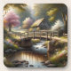 This enchanting countryside scene captures a dreamy cottagecore landscape filled with soft golden light, blooming wildflowers, and a gently flowing stream beneath a rustic wooden bridge. A charming cottage rests among lush trees brushed in pastel pinks, fresh greens, and warm amber hues, creating a whimsical storybook atmosphere. The composition blends folk-inspired romance with painterly detail, evoking quiet mornings, birdsong, and peaceful rural escapes. Delicate florals frame the water’s reflective surface while dappled sunlight filters through tall trees, adding warmth and depth to the serene setting. The overall aesthetic feels nostalgic, cozy, and softly magical—perfect for those drawn to cottagecore charm, pastoral beauty, and fairytale-inspired landscapes. The harmonious colour palette of blush blossoms, buttery sunlight, mossy greens, and sky blues creates a calming yet uplifting mood that feels both timeless and on-trend. AI generated artwork.