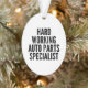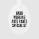 This text design featuring the phrase "Hard Working Auto Parts Specialist" is perfect for any auto parts specialist that works hard.