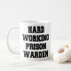 This travel mug featuring the quote "Hard Working Prison Warden" is perfect for any prison warden that works hard.