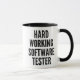 This mug featuring the quote "Hard Working Software Tester" is perfect for any software tester that works hard.