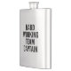 The product is a good size and came exactly as it was pictured. The lid is not attached to the flask, which could be dangerous on drunken nights... The print came out surprisingly well and looks very sharp. Would definitely recommend.