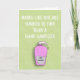 A humorous card to bring a smile on mom's face. There is a hand drawn pink sanitizer bottle with a funny handwritten message at green background. The message is, moms like you are harder to find than a hand sanitizer.