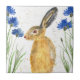 Hare watercolor painting tile. Floral, cornflowers, Hare art. Animal painting. Woodland animals art. Cute rabbit.