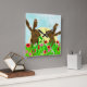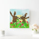 Such a pretty colourful picture of two march hares and a dragonfly in a Summer meadow of green grass, red poppies, and pink clover flowers.. Feel free to hit customize to add a personal name at no extra cost. A decorative wall clock for fans of wildlife, nature and cute animals.