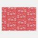 Wrapping paper set featuring cute winter patter, rabbits jumping on snow field. Faux textured seamless design elaborated from handmade wool painting. Lovely gift for winter holidays, fits great for nursery or children room decor. White, red, blue and green colours.