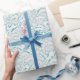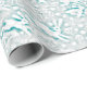 Wrapping paper featuring cute winter pattern in white and turquoise blue, rabbits jumping on snow field. Faux textured seamless design elaborated from handmade wool painting. Lovely gift for winter holidays, fits great for nursery or children room decor.