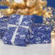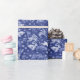 Wrapping paper featuring cute winter pattern in ultramarine and white, rabbits jumping on snow field. Faux textured seamless design elaborated from handmade wool painting. Lovely gift for winter holidays, fits great for nursery or children room decor.