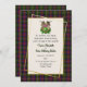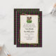 Scottish clan Hargis wedding invitation done in the classic colourful earthy coloured tartan plaid pattern, with a gold tone edged decorative ivory text area. Graphics of a two unicorn heads with a thistle between them, decorates the top of the invitation. Personalize the custom text to suit your highland themed wedding.
