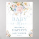 This baby shower welcome sign features a blue spring floral design. The script heading is an image that cannot be edited. All of the other text is fully editable. For more advanced customization of this design, simply select the "Customize It" button above.