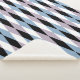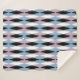 A mid-century inspired design featuring a harlequin diamond pattern in blue, dusty lilac, black and white.