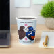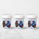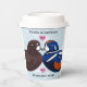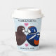 Celebrate any wedding anniversary with these stylish paper cups, which feature a beautiful stylized pair of Harlequin Ducks! Elegant lettering with hexagonal confetti on a light blue background add a memorable touch for this special occasion and milestone. Customize with lovebirds' names and years of marriage.