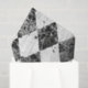 "Harlequin Ephemera Black n White Wood Decoupage, heavy weight tissue paper for crafting and furniture decoration." Rustic elegant black and white painted Harlequin diamond pattern that has been distressed and work over a white crackle finish wood background. Script ephemera handwriting overlay finishes the design. Painted in watercolor and graphically designed by internationally licensed artist and designer, Audrey Jeanne Roberts, copyright.