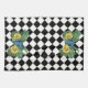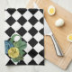 16” x 24” kitchen towel with an image of black and white argyle, a popular pattern in the 80s, and a green bow adorned with blue and yellow satin roses. See matching cloth napkin, paper cocktail napkin, cloth placemat, paper placemat and coasters. See the entire Tubular 80s Kitchen Towel collection in the FOOD/BEV | Linens section.
