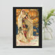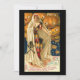 A vintage flat card with a beautiful lady costumed in a harlequin print dress and a cloak with a skull and cross bones. Pumpkins with wide open eyes are behind her. On the image it says The Magical Hallowe'en. Feel free to customize this card.