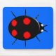 A mousepad featuring a black harlequin ladybird with four irregular shaped red spots on its back, six legs and two white spots that look like eyes on the front of its head. Originally an Asian species it is now living and breeding in Europe and America. It has been put on a blue background but also looks great against other colour backgrounds. You can change the background colour and other aspects of the design by clicking on the customise it button.