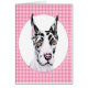 Harlequin Great Dane puppy with cropped ears adorns this pink or pink checked design.