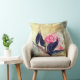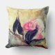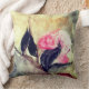 Harmonic Watercolor Pink Flowers Black Leaves Abstract Painting Throw Pillow.