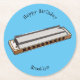 Harmonica cartoon illustration round paper coaster