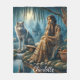 In a serene woodland setting, a Native Indian woman sits thoughtfully by a gently flowing stream, accompanied by a majestic wolf