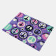 The image displays a pattern consisting of various symbols and shapes. There are multiple peace signs in different colors such as pink, black, and white. These signs are interspersed with hearts and circles in shades of green, blue, purple, and pink. The background is purple with small embellishments like stars and dots in lighter shades. This image is due to the associated colors and repetition of the competition with anti-war movements and a general message of harmonization. The image shows a pattern composed of several symbols and shapes. There are multiple signs of peace in colors like pink, black and white. These signals are interspersed with hearts and circles in tones of green, blue, purple and pink. The background is purple with small decorations like stars and bright points. This image is interesting because of its vibrant colors and the repetition of the symbol of peace that is commonly associated with anti-war movements and a general message of harmony.