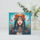 At the centre of this mesmerizing canvas is a resplendent woman adorned in a regal Native American headdress, a testament to the timeless beauty of tradition. The headdress, adorned with vibrant red flowers and azure blue feathers, cascades gracefully, evoking the spirit of nature in every petal and plume. The jewellery that graces her neck and forehead, a tapestry of carnelian and various Southwest stones, reflects the earth's vibrant hues, creating a harmonious symphony of colours that captivate the viewer.