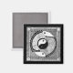 A Yin Yang drawing incorporating symbolic symbolism. If you look closely at this design you will notice turtle like creature which stand for heaven and earth. In the shell of the turtles are spirals which mean life. The Yin Yang is set upon a square background of interwoven straw which stands for harmony. Circling the outer edges of the straw square is a feather looking frame which symbolizes celestial wisdom. To me this pen and ink drawing represents a delicate intermingling of symbols creating a harmonious balance.