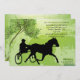 A harness race design that's perfect for a horse-racing enthusiast's birthday or a celebration racetrack outing. The green grunge background features a silhouette of a horse, a sulky and driver. The card is easy to customize with your wording, font, font colour and choice of six paper types.