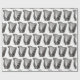 Black and white harp icon with Celtic knot decoration seamless pattern background.