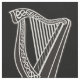 Black and white harp icon with Celtic knot decoration. Custom Text.