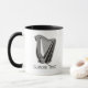 Black and white harp icon with Celtic knot decoration. Custom Text.