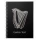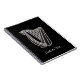 Black and white harp icon with Celtic knot decoration. Custom Text.