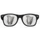Black and white harp icon with Celtic knot decoration. Custom Text.
