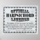 Official Harpsichord License. There are many activities involving various equipment, such as operating an automobile, airplane, etc., that require specialized training and licenses. Making music is something that usually requires training: lessons, practice, and rehearsals. Shouldn't it be required of the prospective musicians that they receive a license to operate the equipment, i.e., their musical instrument?