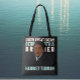 Carry purpose and power with you everywhere with this **Harriet Tubman tote bag**. Featuring her illustrated portrait and the bold quote: