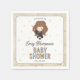 Celebrate your little one on the way with this magical baby shower napkin featuring a sweet chibi-style illustration inspired by Hermione Granger from the Harry Potter series. The design showcases the clever witch wearing her Gryffindor robe and holding a wand, surrounded by pastel starburst accents. Customize with the honoree’s name and event date to create an enchanting napkin perfect for any Harry Potter-loving family.