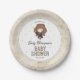 Celebrate your little one on the way with this magical baby shower plate featuring a sweet chibi-style illustration inspired by Hermione Granger from the Harry Potter series. The design showcases the clever witch wearing her Gryffindor robe and holding a wand, surrounded by pastel starburst accents. Customize with the honoree’s name and event date to create an enchanting plate perfect for any Harry Potter-loving family.