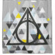 Check out this geometric styled Deathly Hallows symbol, surrounded by grey, yellow, and blue triangles.