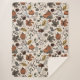 This Fall "Harvest and Horns" sherpa blanket features a Western autumn scene of colourful pumpkins, cow skulls adorned with roses, acorns and Fall foliage against an elegant cream background.