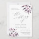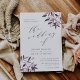 Rustic elegant wedding invitation invitation features soft grey lettering in chic block and italics with calligraphy accents, with sprays of watercolor fall foliage at the corners in muted shades of blush pink, lavender and burgundy.