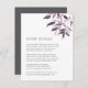 Designed to match our Harvest Blush wedding invitation collection, these rustic elegant information cards feature a spray of watercolor leaves in muted tones of blush pink and burgundy plum. Wondering what information to include on a wedding invitation insert? Consider details like hotel accommodations, group codes, transportation, directions, welcome reception information, and your wedding website url. You can even upload a map to the reverse side using the Customize function.