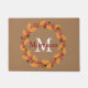 Harvest wreath with orange leaves, brown acorns and twigs, and red berries! Customize your text and background colour!