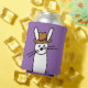 Purple can cozie cooler) with doodle of rabbit wearing a hat. On bottom of cozie, "Property of Elwood P. Dowd." Doodle taken from the gift book, "Dare To Be Happy." For more information, visit bethaschmidt.com. Custom requests welcome.