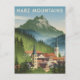 A mystical and nostalgic depiction of the Harz Mountains in central Germany, known for their dense forests, rugged peaks, and fairytale-like charm. The design captures the region's towering mountains, winding trails, and iconic sights such as the Brocken peak, medieval castles, and half-timbered villages. Rendered in a vintage style, the artwork evokes the enchanting beauty and cultural legends of the Harz, inviting viewers to explore its outdoor adventures and historic allure.