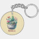Express your love for these weird and wonderful plants with this fun cacti keychain. The design features a pot full of cacti with the text "#Cactuslove" on the one side and a name on the other side. The text below the design is customizable and can be changed to have the same text on both sides, or with a name on the one side, as in the example. This would make a wonderful gift for anyone who loves these interesting plants.