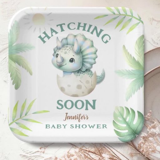 Hatching Soon Triceratops Boy Dinosaur Baby ShowerDesigned by H-Art Studio Design