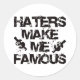 Haters Make Me Famous. That’s right; haters make me famous. Heard of “any bad press is good press”? Well, it’s basically the same concept. Here’s a variety of products that range from t-shirts to mugs that use this design. It’s a great gift for anyone close to achieving that goal, to become famous with the help of haters. After all, haters do make me famous.