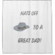 Mosaic, graphic drawing, of grey coloured, hat, with grey, blue, brown, and black patterned, hatband-displayed with text, "Hats Off To A Great Dad!".