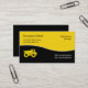 Trash removal and hauling business cards with image of a dump truck and simple text layout you can customize. Designed for a construction hauling or residential waste removal service.