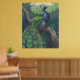 Le paon indien, Pavo cristatus. Je voulais peindre l'animal dans une posture plus naturaliste que celle typique des hommes extravagants, avec son train magnifique en vue sans être exposé. Ici, il s'assied sur une branche et réfléchit aux mystères de l'existence en surplombant ses jungles indiennes de floride son pays natal.