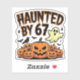 Unique Halloween design featuring pumpkins, ghost, bats, and “Haunted By 67” text.